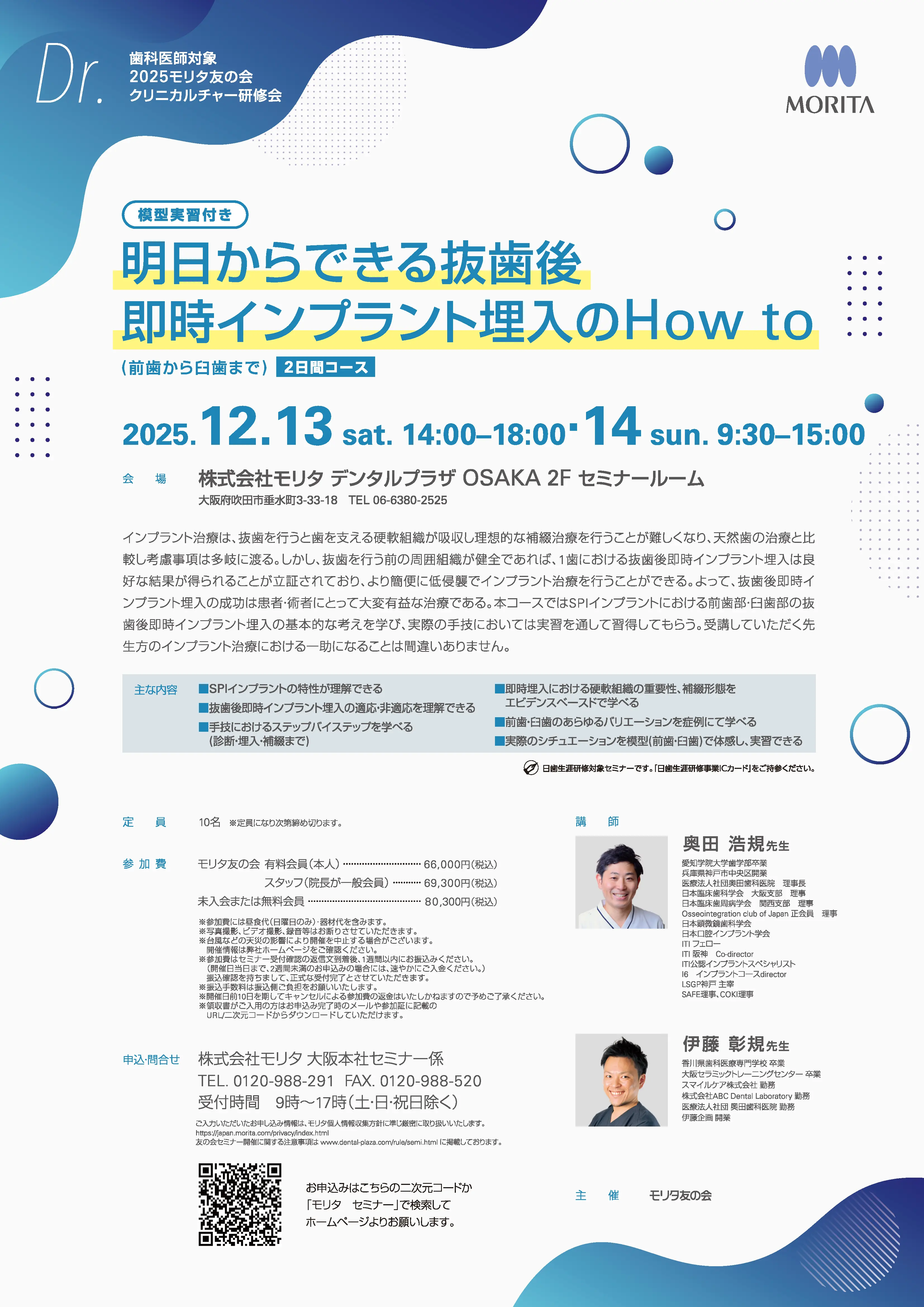 抜歯即時インプラントに特化した内容で9月に実施予定です。多くのドクターに参加いただきたいと思っています。