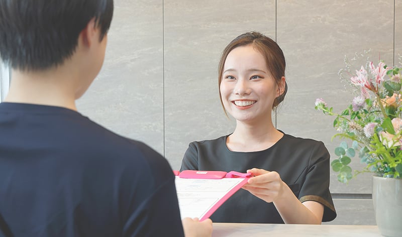 まずは受付にお越しください。保険証・医療証をお預かりし、問診表を記入して頂きます。